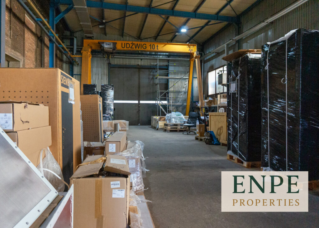 Hala dostępna z zapleczem sanitarno – socjalnym, pomieszczeniem biurowym za dodatkową opłatę.